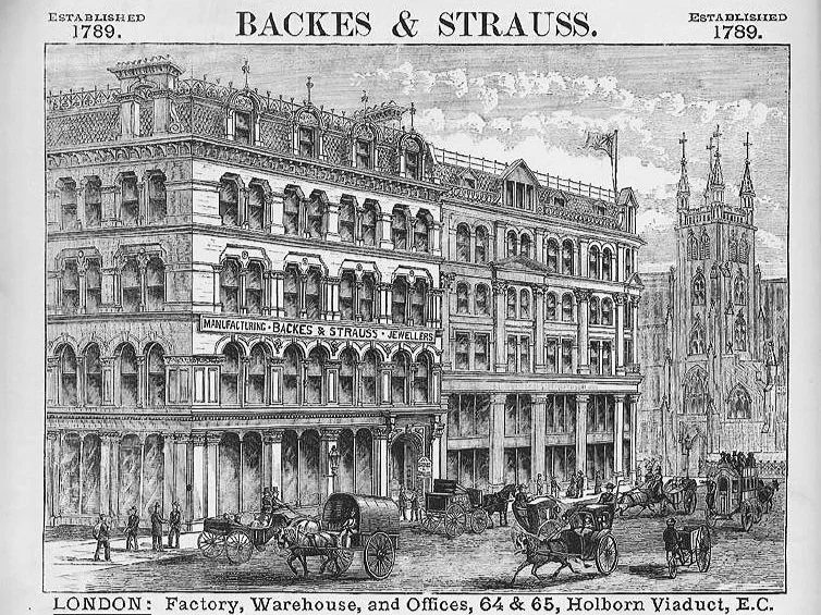Johann Franz, Georges Backes' son, opened a branch office in London at 10 Hatton Garden - London. Even though the building no longer exists, the Backes and Strauss group still has offices in London on Jermyn Street - Mayfair.
